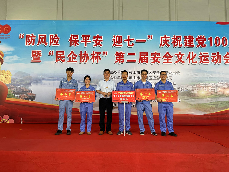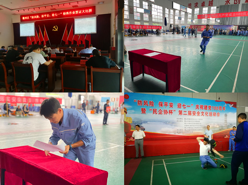 2021年7月1日,華惠科技代表隊(duì)參加了徽州區(qū)舉辦的“防風(fēng)險,保平安,迎七一”慶祝建黨100周年暨“民企協(xié)杯”第二屆安全文化運(yùn)動會,全區(qū)共24家企業(yè)代表隊(duì)共150余人參加此次運(yùn)動會。運(yùn)動會共設(shè)置了大家來找“茬”、特殊作業(yè)票證大比拼、穿戴比拼和接力奔跑等比賽項(xiàng)目。