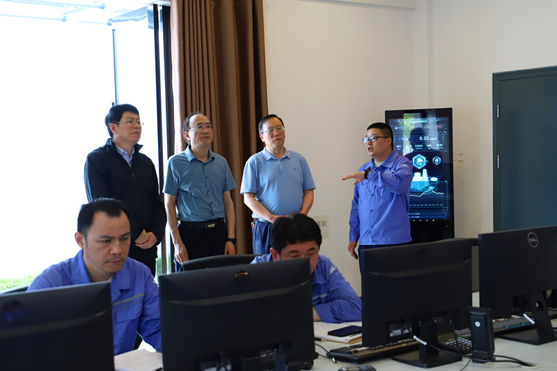 夏輯一行到公司中控室參觀,聽(tīng)取了公司制造數(shù)字化升級(jí),安全環(huán)保物聯(lián)網(wǎng)系統(tǒng)運(yùn)行等介紹。